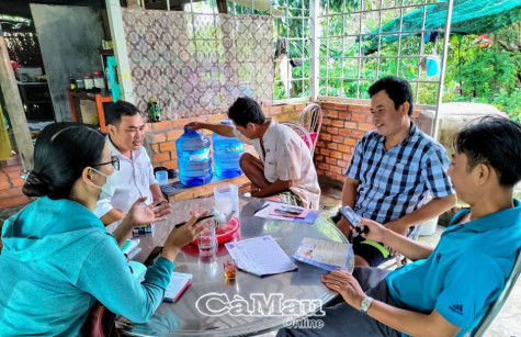 BHXH huyện Trần Văn Thời phối hợp với chính quyền tuyên truyền chính sách BHXH tự nguyện đến từng hộ dân.