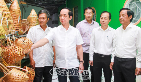 Trước buổi làm việc, đồng chí Hồ Thanh Thuỷ, Phó Bí thư Tỉnh uỷ, Chủ tịch Uỷ ban MTTQ Việt Nam tỉnh Cà Mau và đoàn công tác Thường trực Tỉnh uỷ đã đến khảo sát tại Hợp tác xã làng nghề truyền thống Đan Đát ở ấp Nhà Lầu 1, xã Ninh Thạnh Lợi.