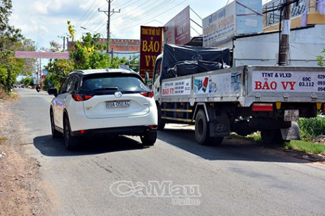 | Lộ Đầm Dơi - Cà Mau hẹp, gây khó khăn cho phương tiện lưu thông. |
