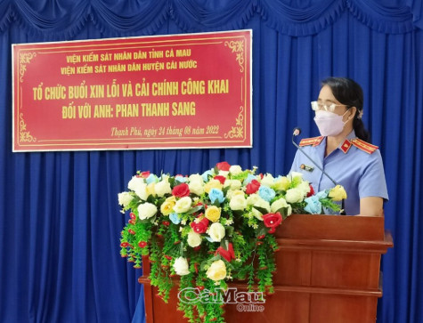 Sáng nay 24/8, tại UBND xã Thạnh Phú, Viện Kiểm sát nhân dân huyện Cái Nước đã tổ chức xin lỗi và cải chính công khai đối với vụ việc liên quan đến anh Phan Thanh Sang.