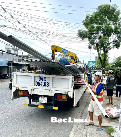 Lực lượng chức năng tháo dỡ công trình vi phạm trật tự xây dựng trên địa bàn TP. Bạc liêu. Ảnh: T.A