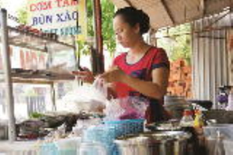Dạo một vòng quanh các cổng trường, những loại thức ăn yêu thích của học sinh như bánh tráng trộn, bánh mì nướng, chả chiên, trà sữa, bắp xào… cho dù dùng tại chỗ hay mang về vẫn được người bán đựng trong hộp xốp, kèm theo đôi đũa. Vì để tránh mất thời gian rửa cũng như dọn dẹp, đa phần các chủ bán hàng, nhất là xe đẩy, quán cóc, sử dụng các sản phẩm một lần này, xài xong rồi vứt đi. Chính việc này dẫn đến tình trạng rác vương vãi khắp nơi…