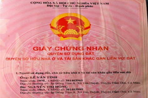 | Giấy chứng nhận quyền sử dụng đất của bà Hồng sau khi mua đất từ ông Rồi.. |