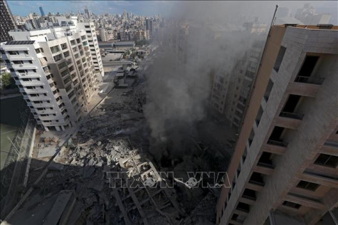 Cảnh đổ nát sau cuộc không kích của Israel tại Beirut, Lebanon, ngày 2-10-2024. Ảnh: THX/TTXVN
