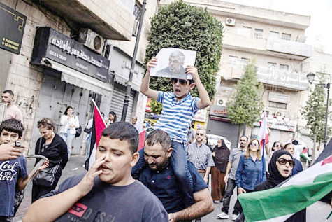 Cậu bé Palestine cầm chân dung của thủ lĩnh Hamas Yahya Sinwar, vừa bị Israel tuyên bố giết chết, trong một cuộc tuần hành ở thành phố Ramallah, Bờ Tây vào ngày 18-10. Ảnh: AFP