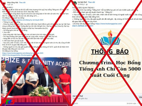 Theo đó, những ngày qua, trên mạng xã hội xuất hiện nhiều thông báo liên quan đến các chương trình “quỹ học bổng tiếng Anh, hỗ trợ 80% học phí các khóa IELTS, giao tiếp, TOEIC… hưởng ứng đề án 2024 của Bộ GD triển khai”; “Bộ GD phát động chương trình học bổng tiếng Anh cho người Việt”…