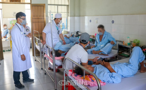 | Các bác sĩ khoa Ung bướu Bệnh viện Đa khoa Cà Mau thăm khám cho bệnh nhân ung thư đang nằm điều trị tại khoa. (ảnh minh họa). |