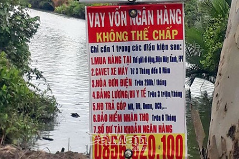 (CMO) Thời gian qua, nhiều kênh thông tin truyền thông, báo, đài phản ánh tình trạng các địa phương trong và ngoài tỉnh liên tục xuất hiện nhiều vụ vỡ nợ do vay tín dụng đen. Mặc dù trên địa bàn huyện U Minh chưa xảy ra vụ việc nào, nhưng hiện nay ở địa bàn các xã, thị trấn tình trạng treo bảng tuyên tuyền quảng cáo cho vay vốn ngân hàng không thế chấp rất phổ biến.