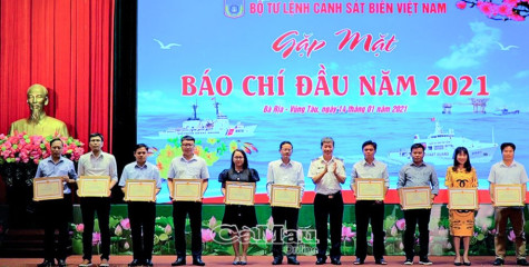 | Bộ Tư lệnh Cảnh sát biển Việt Nam tặng bằng khen cho phóng viên nhân cuộc họp mặt đầu xuân 2021 tại TP Vũng Tàu, tỉnh Bà Rịa - Vũng Tàu. |