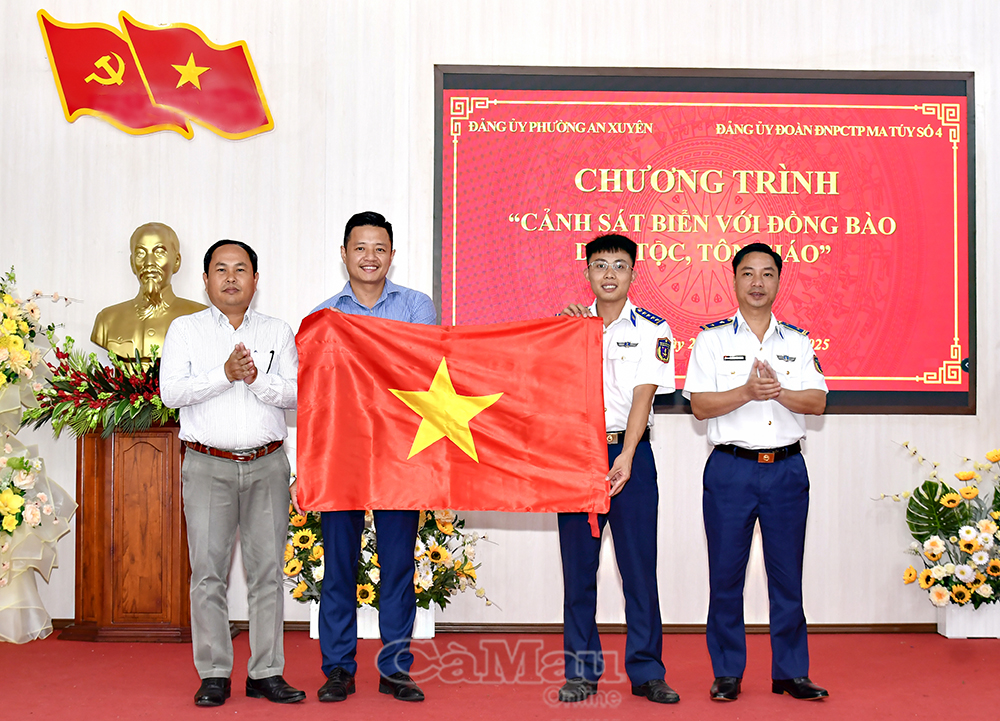 Đoàn đặc nhiệm phòng chống tội phạm ma tuý số 4 tặng 100 lá cờ Tổ quốc cho Đảng uỷ phường An Xuyên.