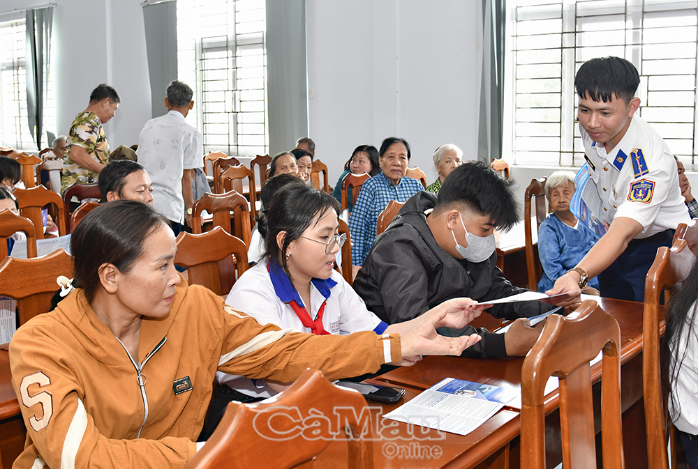 Phát tờ rơi tuyên truyền Luật Cảnh sát biển; Luật phòng, chống ma tuý, tác hại của ma tuý.