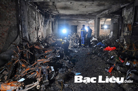 Hiện trường vụ cháy chung cư mini trên phố Khương Hạ, ngày 13/9. Ảnh: Internet