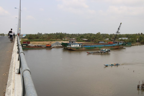 | Nhiều phương tiện loại lớn của Công ty Cổ phần Xây dựng công trình Hồng Lâm vẫn ngang nhiên cập bến sát bên hông cầu Khánh An. |