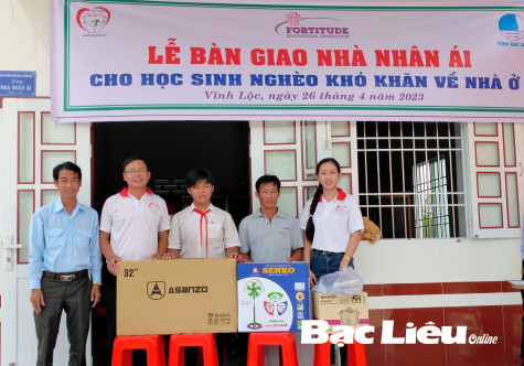 Mới đây, Tỉnh đoàn - Hội LHTN Việt Nam tỉnh - Hội đồng Đội tỉnh đã phối hợp với Hội từ thiện Cà phê Suối Mơ (tỉnh Vĩnh Long) tổ chức bàn giao nhà Nhân ái cho em Trần Minh Hạo (xã Vĩnh Lộc, huyện Hồng Dân) và nhà Vạn phúc cho em Tăng Thị Anh Thư (xã Vĩnh Trạch Đông, TP. Bạc Liêu), sau hơn 2 tháng khởi công xây dựng. Đây là 2 trường hợp thiếu nhi có hoàn cảnh khó khăn về nhà ở đã được tổ chức Đoàn - Hội - Đội khảo sát, tìm hiểu trước đó để giúp đỡ.