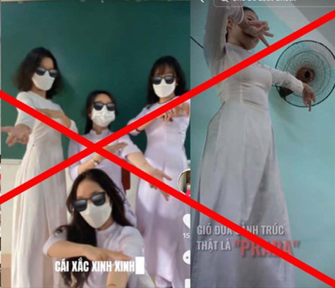 Cụ thể, trong lời rap có những từ mang tính miệt thị hình tượng lịch sử: “Chú bé loắt choắt/.../ Cái đầu cắt moi” (thay vì “Cái đầu nghênh nghênh” như bài thơ gốc, cụm từ “đầu cắt moi” dùng để miêu tả những thanh niên “choai choai” tuổi mới lớn thích thể hiện, kiểu tóc này sử dụng với sắc thái châm biếm, giễu cợt) và nhiều ca từ nhảm nhí khác. Ấy thế mà hàng trăm tài khoản TikTok lại sử dụng đoạn rap để lồng ghép ảnh vào. Những bức ảnh được lồng ghép cũng vô cùng phản cảm: học sinh quậy phá trong lớp, ngả ngớn tạo dáng, khoe thân...