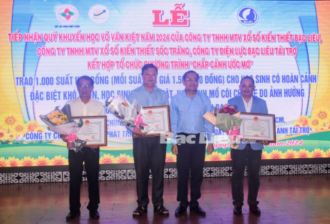 Và Hội Khuyến học tỉnh tiếp tục sứ mệnh là cầu nối - nối những tấm lòng vì đàn em thân yêu, kết nối những người con xa quê luôn dành sự quan tâm cho các em - để có một chương trình mang lại nguồn động lực lớn lao cho học sinh nghèo và gia đình các em. Đó là buổi lễ tiếp nhận tài trợ Quỹ Khuyến học Võ Văn Kiệt năm 2024 và kết hợp tổ chức Chương trình “Chắp cánh ước mơ” trao 1.000 suất học bổng cho học sinh có hoàn cảnh khó khăn năm học 2023 - 2024 do UBND tỉnh phối hợp với Hội khuyến học và các doanh nghiệp, mạnh thường quân tổ chức chiều 29/3 tại trung tâm tiệc cưới Hồ Nam (TP. Bạc Liêu).
