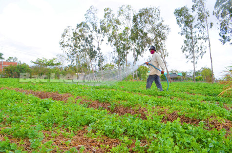 Nông dân xã Vĩnh Trạch (TP. Bạc Liêu) chăm sóc rau màu.