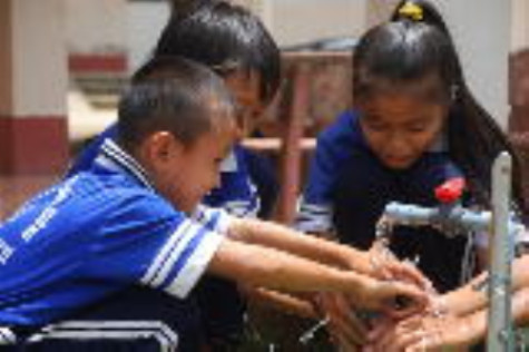 | Học sinh trường Tiểu học Trịnh Minh Hưởng, xã Nguyễn Phích có nước sạch để sử dụng là 1 niềm vui lớn. |