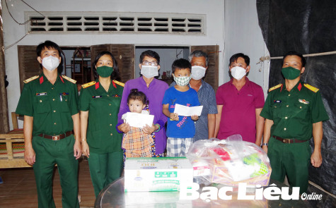 Chi bộ 2 (thuộc Đảng bộ Phòng Chính trị, Bộ CHQS tỉnh) trao tiền hỗ trợ và nhu yếu phẩm cho trẻ có cha, mẹ mất do dịch COVID-19 trên địa bàn TP. Bạc Liêu.