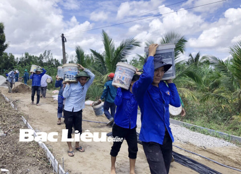 Đoàn viên - thanh niên huyện Hồng Dân tham gia làm giao thông nông thôn. Ảnh: H.L