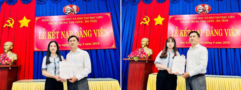 Theo đó, được sự thống nhất của Đảng ủy Khối các cơ quan tỉnh, Chi bộ Trung tâm GDTX - HN tỉnh tổ chức kết nạp đảng cho 2 học viên: Nguyễn Thị Mai Trinh (sinh ngày 23/2/2001, quê quán xã Biển Bạch, huyện Thới Bình, tỉnh Cà Mau) và Dương Thị Thúy Duy (sinh ngày 19/10/2003, quê quán xã Vĩnh Trạch, TP. Bạc Liêu).