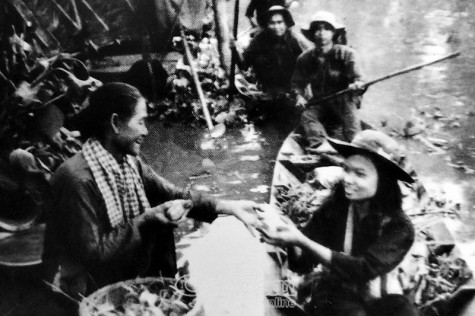 Tết nay chúng con lại trở về dòng kênh năm cũ, bóng nước như còn in dấu bà mẹ chiến sĩ vấn chiếc răn rằn lên mái tóc hoa râm, đẩy từng mái dầm về hướng những đứa con có cái tên chung: Bộ đội Cụ Hồ.