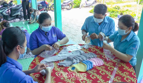 Tuy còn phải lo nội trợ, công việc gia đình nhưng những đoàn viên của Câu lạc bộ May khẩu trang thị trấn Ðầm Dơi, huyện Ðầm Dơi vẫn duy trì hoạt động ý nghĩa này từ tháng 3/2020 đến nay. Những chiếc khẩu trang được đo may theo 2 cỡ: cỡ lớn cho người trưởng thành, cỡ nhỏ cho các em học sinh. 15 thành viên với hơn 10 máy may đã góp sức cho công tác phòng, chống dịch tại địa bàn.