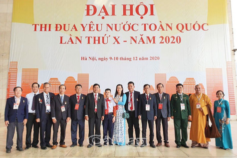 | Ông Chín Lam (thứ 4 từ phải sang) là một trong những nông dân tiêu biểu của tỉnh Cà Mau dự Đại hội Thi đua yêu nước toàn quốc lần thứ X diễn ra tại Hà Nội. |