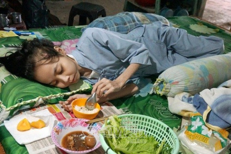Huệ Nhân gầy gò trơ xương, nằm liệt một chỗ.