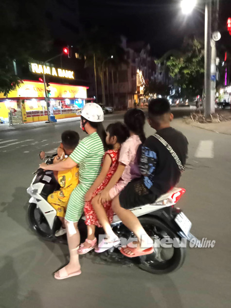 Tình trạng điều khiển mô tô, xe gắn máy chở quá số người quy định lưu thông trên đường bộ là một trong những vi phạm dễ nhận thấy. Trong đó, có phụ huynh chở cùng lúc 4 - 5 trẻ em trên một xe máy (ảnh). Theo quy định hiện hành, người điều khiển mô tô hai bánh, xe gắn máy chỉ được chở một người, trừ những trường hợp chở người bệnh đi cấp cứu; áp giải người có hành vi vi phạm pháp luật; trong trường hợp chở trẻ em dưới 14 tuổi thì chỉ được chở tối đa 2 người.