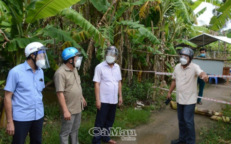 | Đồng chí Nguyễn Tiến Hải, Ủy viên Trung ương Đảng, Bí thư Tỉnh uỷ, Chủ tịch HĐND tỉnh Cà Mau (bìa phải) kiểm tra thực tế khu phong toả tại ấp Nhà Máy A, xã Khánh Hưng, huyện Trần Văn Thời. |
