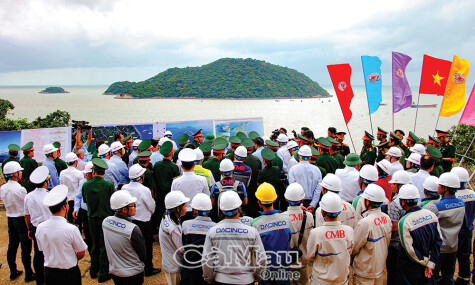Cầu vượt biển nối từ đất liền ra đảo Hòn Khoai, cùng với cảng tổng hợp lưỡng dụng và tuyến cao tốc Cà Mau - Ðất Mũi, không chỉ là công trình đơn lẻ mà là sự hợp lực của các dự án chiến lược. Ảnh: Danh Chanh Ða