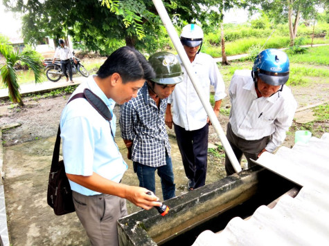 | Trung tâm Y tế huyện Cái Nước kiểm tra, giám sát công tác diệt muỗi, diệt lăng quăng tại hộ gia đình. |