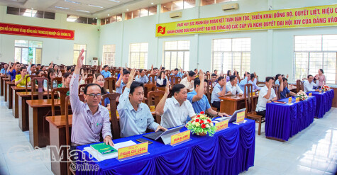 Cử tri Xã Phan Ngọc Hiển biểu quyết thống nhất lựa chọn người ứng cử đại biểu HÐND xã nhiệm kỳ 2026-2031. Ảnh: THANH CHÍNH