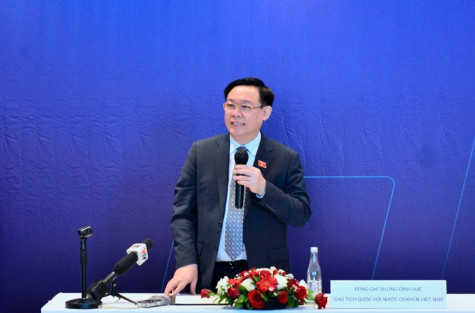 Chủ tịch Quốc hội Vương Đình Huệ phát biểu tại cuộc làm việc.