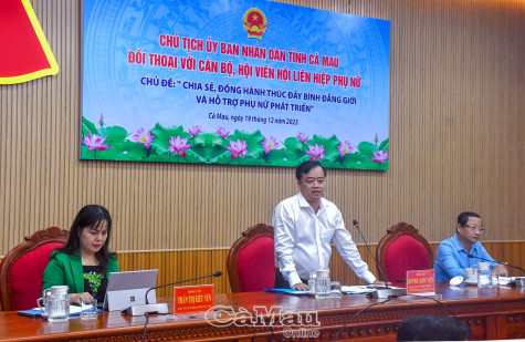 Chủ tịch UBND tỉnh Cà Mau mong muốn cán bộ, hội viên phụ nữ mạnh dạn nêu lên ý kiến, chia sẻ khó khăn, bày tỏ tâm tư, nguyện vọng, để lãnh đạo tỉnh và các sở, ngành kịp thời tháo gỡ khó khăn, nhằm tiếp tục phát huy vai trò, vị trí, tiềm năng to lớn của phụ nữ trong thời gian tới.