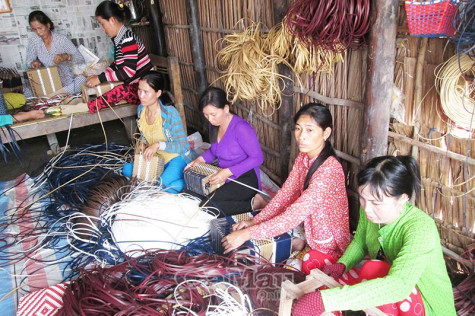 Trung tâm Giáo dục nghề nghiệp huyện U Minh đào tạo nghề đan giỏ nhựa cho lao động nông thôn.