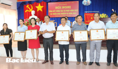 Khen thưởng các cá nhân có thành tích trong công tác tuyên truyền, phổ biến giáo dục pháp luật. Ảnh: K.P