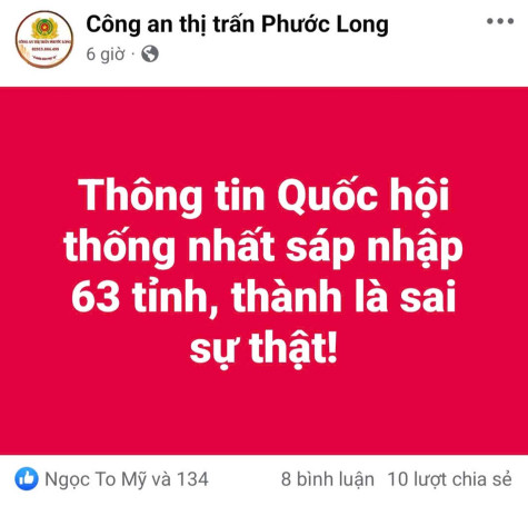 Cơ quan Công an cảnh báo việc đăng tin giả, sai sự thật về nội dung sáp nhập tỉnh, thành. Ảnh: Đ.H