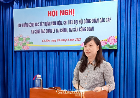 (CMO) Sáng nay 8/9, Liên đoàn Lao động tỉnh tổ chức tập huấn nghiệp vụ về công tác tổ chức đại hội công đoàn các cấp cho khoảng 130 đại biểu là Chủ tịch, Phó chủ tịch Liên đoàn Lao động các huyện, TP Cà Mau và các công đoàn ngành trực thuộc trên địa bàn tỉnh.