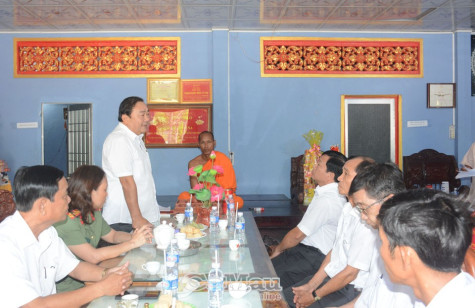Tại các nơi đến thăm, Chủ tịch Uỷ ban MTTQ Việt Nam tỉnh Trần Văn Hiện gửi lời chúc các vị sư, ban quản trị, ban hoằng pháp, người có uy tín cùng bà con dân tộc Khmer đón năm mới vui tươi, đầm ấm và an toàn.