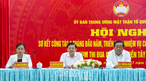 Ông Nguyễn Hữu Dũng, Phó chủ tịch Uỷ ban Trung ương MTTQ Việt Nam; ông Trần Văn Hiện, Ủy viên BTV Tỉnh uỷ, Chủ tịch Uỷ ban MTTQ Việt Nam tỉnh Cà Mau và bà Nguyễn Thị Mai Rý, Phó chủ tịch Thường trực Uỷ ban MTTQ Việt Nam tỉnh Bến Tre (Cụm trưởng Cụm thi đua các tỉnh Tây Nam Bộ), đồng chủ trì hội nghị .