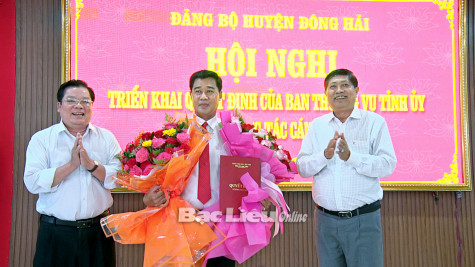 Tại hội nghị, thừa ủy quyền của Ban Thường vụ Tỉnh ủy, lãnh đạo Ban Tổ chức Huyện ủy Đông Hải đã triển khai Quyết định của Ban Thường vụ Tỉnh ủy về việc chuẩn y đồng chí Nguyễn Văn Sáng - Ủy viên Ban Thường vụ Huyện ủy, Phó Chủ tịch HĐND huyện giữ chức Phó Bí thư Huyện ủy Đông Hải nhiệm kỳ 2020 - 2025.