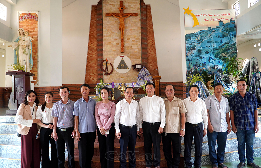Báo Cà Mau Tiếp tục các hoạt động thăm hỏi, chúc mừng Lễ Giáng sinh năm 2025, chiều 22/12, Đoàn công tác Tỉnh uỷ, HĐND, UBND, Uỷ ban MTTQ Việt Nam tỉnh Cà Mau đến thăm, tặng quà và chúc mừng các cơ sở Công giáo, Tin Lành trên địa bàn, gửi lời chúc mùa Noel an lành, ấm áp đến các vị chức sắc, chức việc và đồng bào giáo dân.