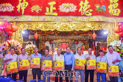 Dịp này, đoàn công tác trao quà của Tỉnh uỷ - HĐND - UBND - Uỷ ban MTTQ Việt Nam tỉnh Cà Mau tặng đến đại điện Phước Đức Cổ Miếu và Miếu Minh Nguyệt Cư Sĩ Lâm; đồng thời tặng quà 20 vị cao niên, trưởng ban quản lý các Hội, Đoàn người Hoa