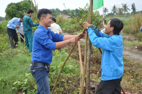 | Ra quân trồng cây xanh tại xã Tân Hải, huyện Phú Tân. |
