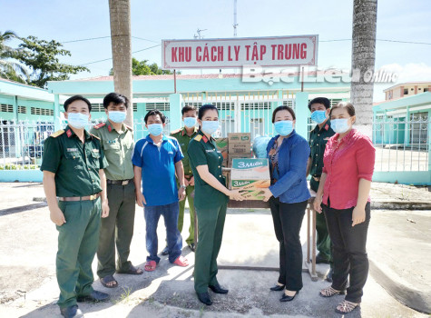 Hội LHPN huyện Phước Long tặng quà cho khu cách ly tập trung của huyện. Ảnh: T.T