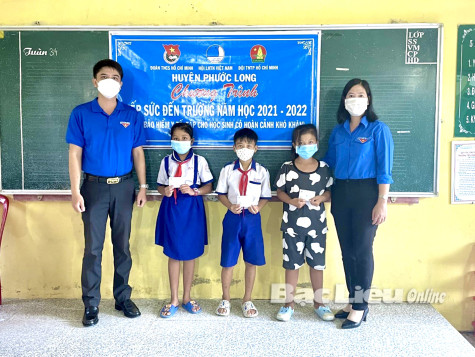 Huyện đoàn Phước Long tặng thẻ BHYT cho học sinh Trường tiểu học xã Phước Long năm học 2021 - 2022. Ảnh: T.A