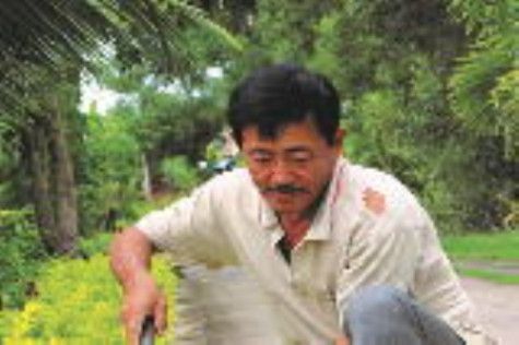| Ông Nguyễn Trường Giang, ấp Tân Hoà, xã Tân Tiến chăm sóc hàng rào cây xanh. |