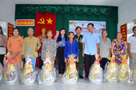 | Tỉnh đoàn Cà Mau tặng quà tết cho hộ nghèo, gia đình chính sách ở thị trấn Sông Đốc. |